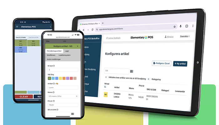 Elementary POS – ett Android-baserat kassasystem med webbaserat backoffice för restaurang, café, butik och snabbmatsrestauranger. Effektivt, skalbart och lätt att använda.